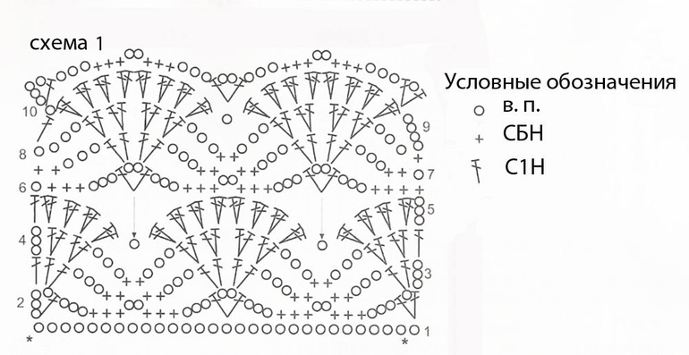 Узор «ракушка»: вязать по схеме 1