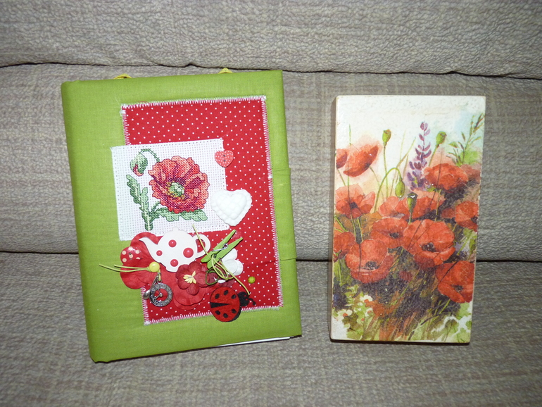 Вот тот самый блокнотик и еще коробочка с маками (у нас на даче кухня вся в маках))