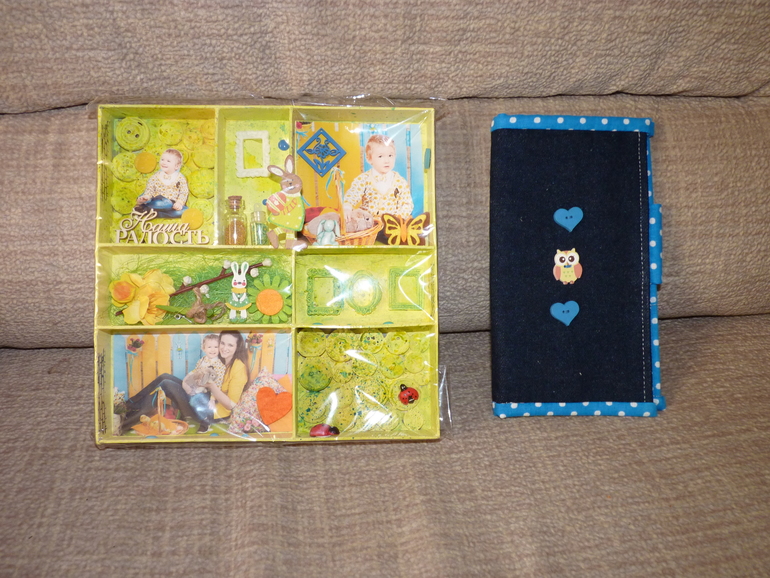 Еще рукодельными сюрпризами оказались вот такие чУдные подарки) Шадоубокс (опять же всю красоту можно увидеть у Леночки тут и холдер для документов, как раз вовремя - собираемся этим летом на море, он нам очень пригодится))