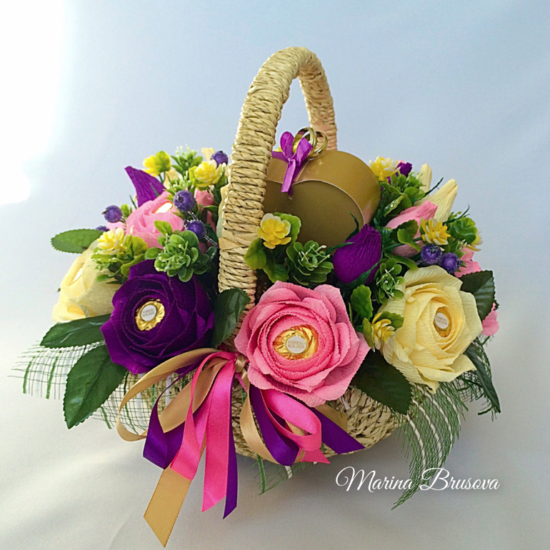 Начну с конца. Первая моя свадебная корзина, дали волю фантазии и тут "Остапа понесло".