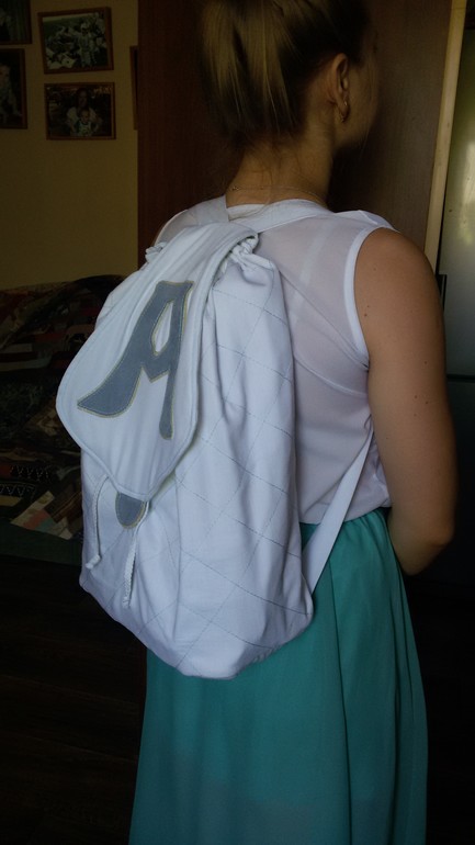Шитье одежды, выкройки, ремонт одежды, шторы, швейные машины (уже приобретенные)Подруга идет на шоу-красок , надо было сшить рюкзак, что-бы нежалко было испачкать и на память останется после такого полёта красок. Вообщем купила она джинсы и для жесткости двунитку, а всё остальное у меня было. Вот что у нас получилось.