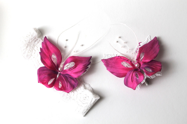 Бабочки- сестрички, одна на повязке, другая, на крокодильчике.