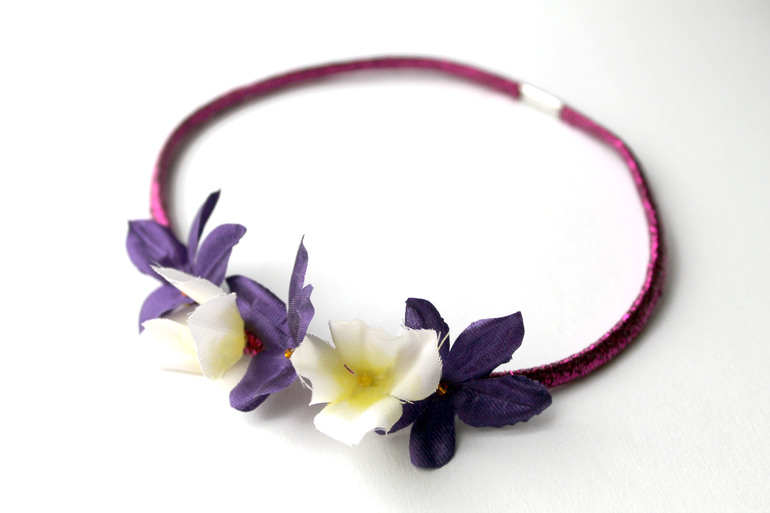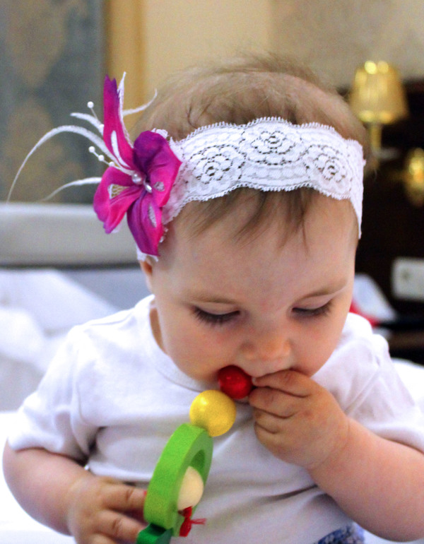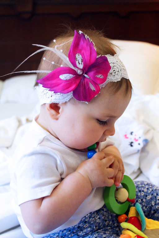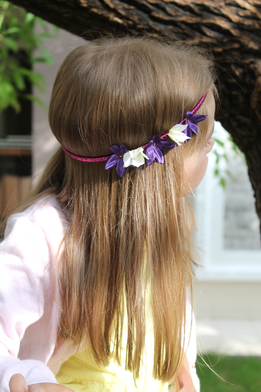 А эту резинку дочка уже с год натягивает и носит, и я решила приделать к ней пару цветочков.