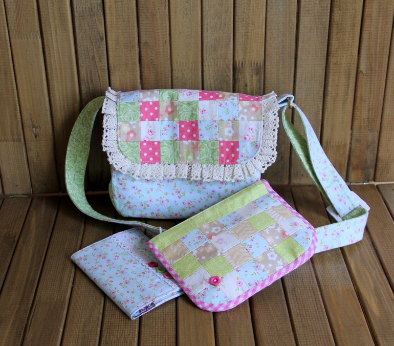 А это наборчик Пэчворк, пастельная нежность и прелесть)))) Косметичка и обложка для паспорта к сумке. Все для моей Надяши)))