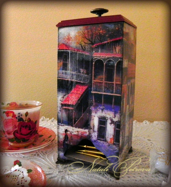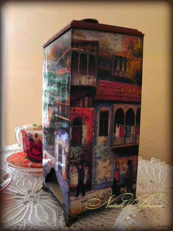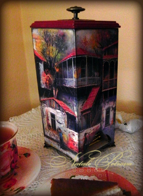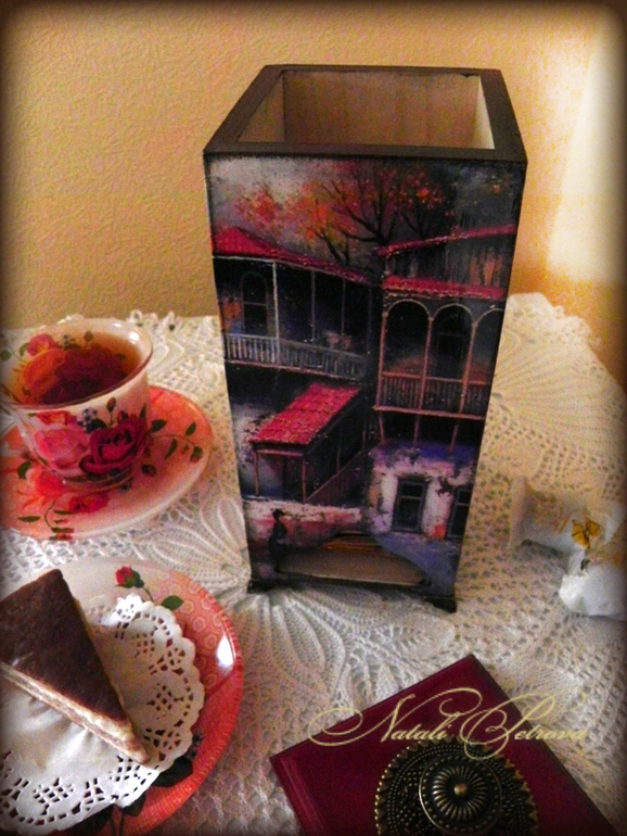 Наталья в Рукоделие 10 лет Чайный домик Декупаж В работа использована картина "Старый Тбилиси" художника Давида Мартиашвили Под катом много фото Домик пока свободен))) Посмотрите еще 20 записей на эту тему Отменить Ответить Вероника 10.06.2015 Ответить Наталья :=))) 10.06.2015 Ответить Виктория Очень красиво! Ощущение спокойствия! 09.06.2015 Ответить Наталья Мерси) 09.06.2015 Ответить Вера Очень красиво и реалистично! 09.06.2015 Ответить Наталья Спасибо) 09.06.2015 Ответить Наталия Очень красиво! А мне то времени не хватает, то желания. Лежит мой домик почти год. 09.06.2015 Ответить Наталья Спасибо. Просто время для него не пришло) 09.06.2015 Ответить Татьяна Прикольно! Ощущение объема какое то ... 09.06.2015 Ответить Наталья Спасибо, Таня. Это бзик у меня был. Хотела чайный домик с городом и все тут 09.06.2015 Ответить Татьяна Мне очень часто хочется чего то чтобы как по настоящему ....если домик то окна, двери .... ну и так далее 09.06.2015 Ответить Наталья Такое я уже делала. Наигралась))) 09.06.2015 Ответить Татьяна а я похоже еще нет 09.06.2015 Ответить Ключница в национальном стиле Комод "С историей" Чаты Беременных Выберите чат: Январята-2026 Февралята-2026 Мартята-2026 Апрелята-2026 Майчата-2026 Июнята-2026 Июлята-2026 Августята-2026