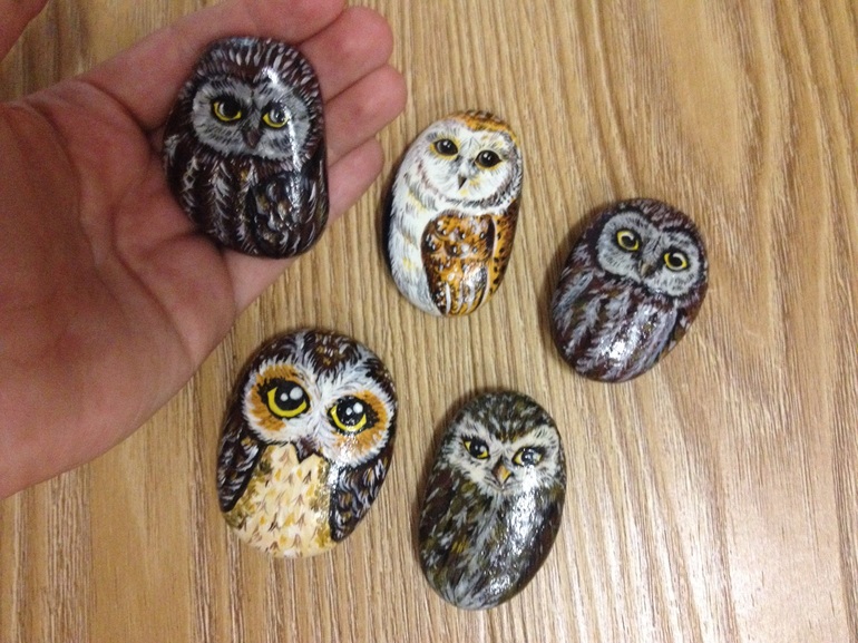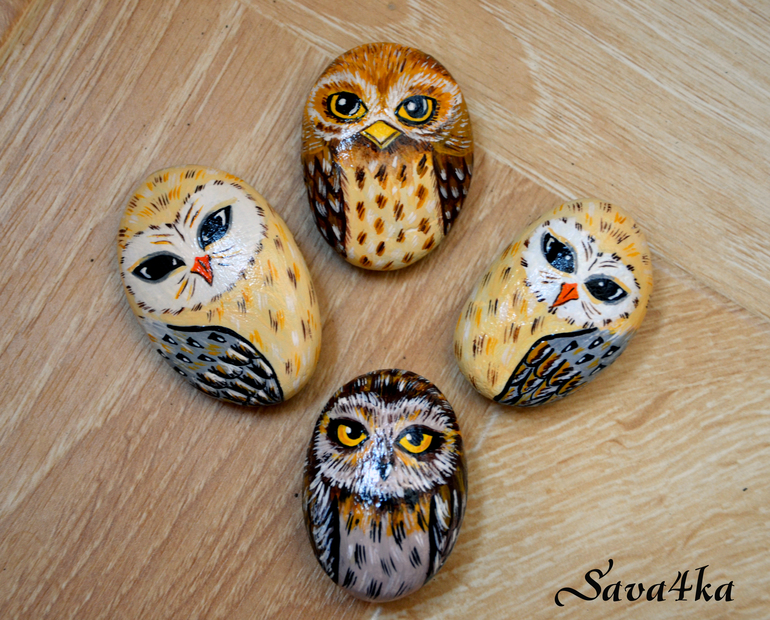 Добрый день! Простите, что сразу не ответила. Была в отъезде, только сегодня вернулась. На фото совушки, что есть в наличии. Могу нарисовать на заказ, займет 1-2 дня. Я сама в железнодорожном, но можно забрать с работы мужа (м.Тургеневская).