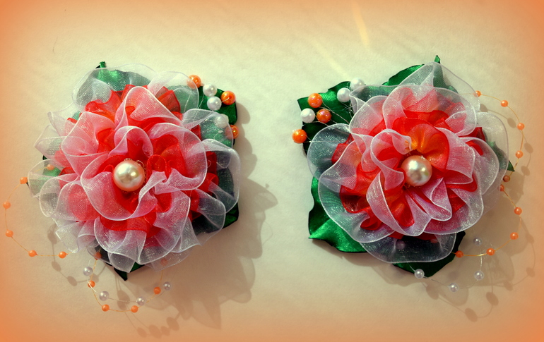 Вот такие цветочки сотворились. В диаметре 9 см. легкие, воздушные, яркие! А то все школьное, да школьное)))