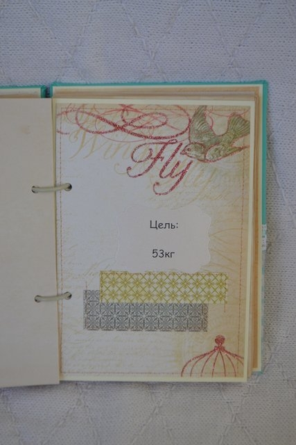 Сегодня я к Вам с мятным блокнотом. Необычным! Делала его под заказ для девушки, которая будет делать записи, достигая своей цели в похудении :)