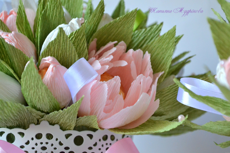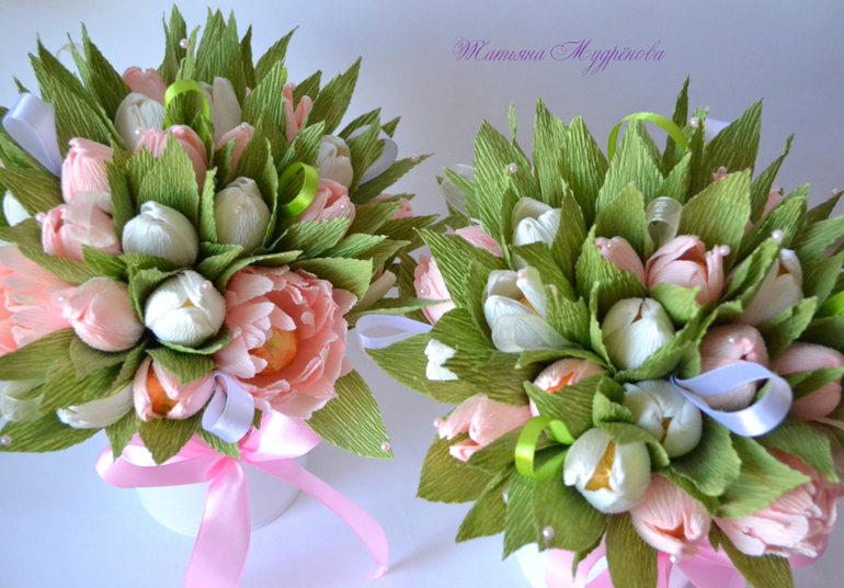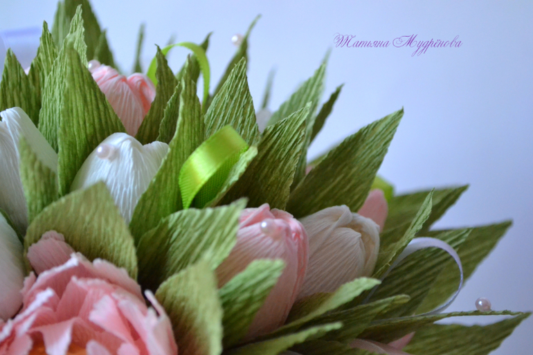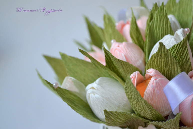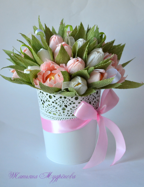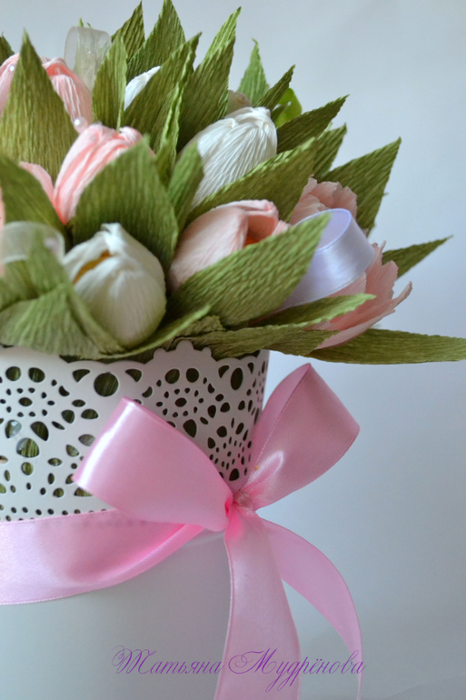 совсем отошла я от дел и причин этому много.кому интересно-прошу под кат во-первых переезд, а во -вторых,прям не хочу что-то делать,ленюсь.ну и в-третьих-заказчики реально хотят готовые работы ниже стоимости хотя бы конфет в них. так что я почти не рекламируюсь в городе у себя,на последний звонок не брала заказов. правда выполнила 2 работы: корзину вот только что-и тюльпаны еще аж к 8 марта!