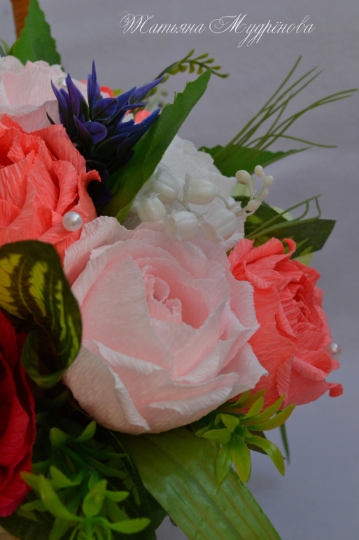 Цветочки очень замечательные, я конечно не конфетно-букетных дел мастер, но тоже заказчики бывают разные (я выпускными альбомами занимаюсь). Там из 30 человек обязательно появиться родитель который чем то все равно не доволен... у каждого свои вкусы, я не спорю... Но я считаю работу выполненной и мне она нравиться, кому нет, тот пусть ищет другого мастера.