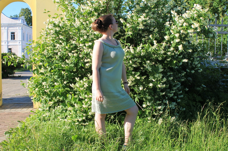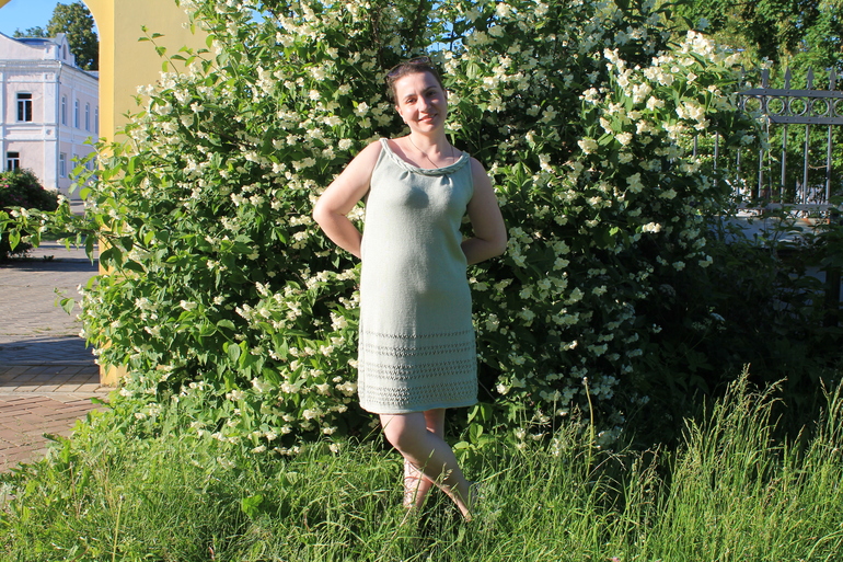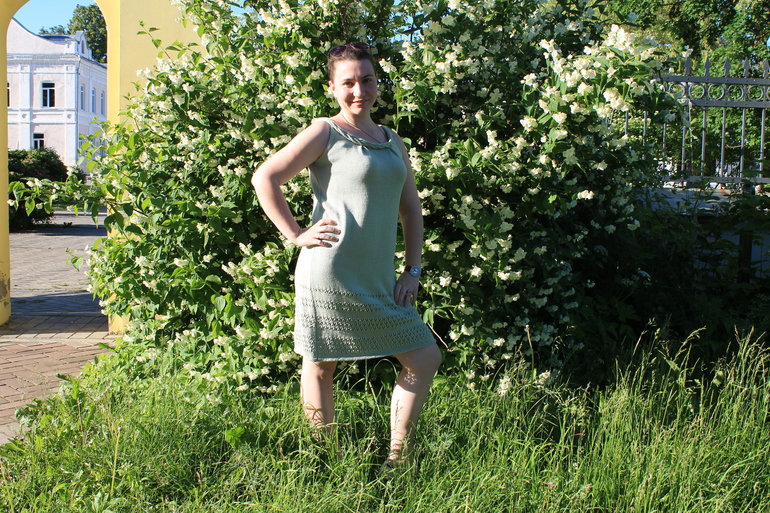 Давно я ничего не показывала, и вот выношу на ваш суд свое платье. Вязала его очень долго, начала еще тем летом связала половину, потом пошли заказы на шапочки, потом детям вязалось, ну а потом у меня потерялся журнал, где я делала заметки. И так половина платье лежала в корзине почти год. Наконец таки (чудесным образом) нашелся мой журнал и на одном дыхании завершилось мое творение.