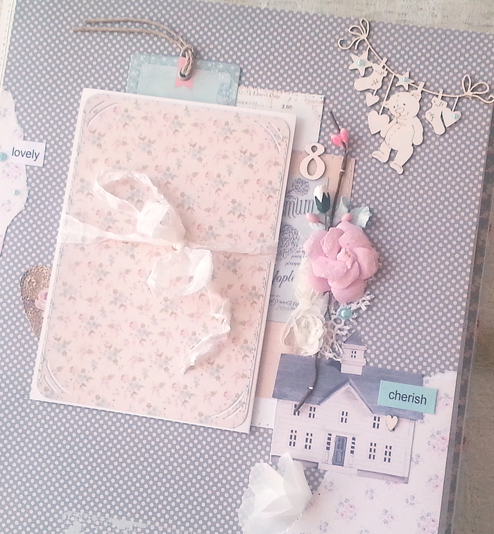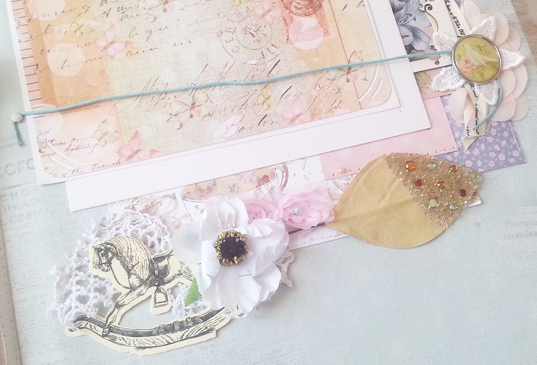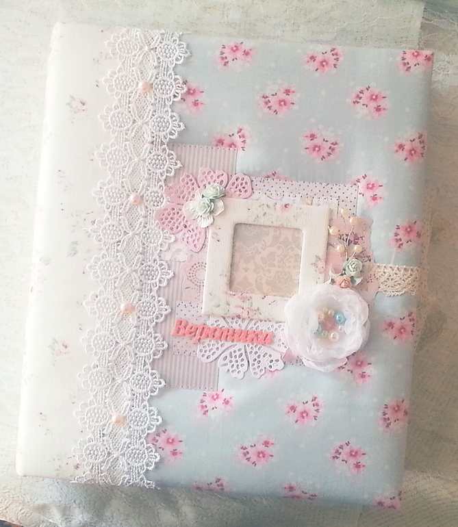 На обложке имеется тканевая рамочка, куда потом вставят фото малышки).. Чипборд покрыла глиттером, очень красиво вышло..
