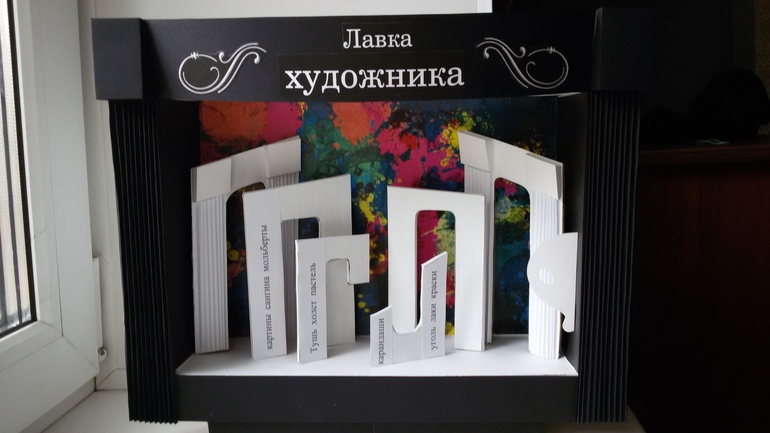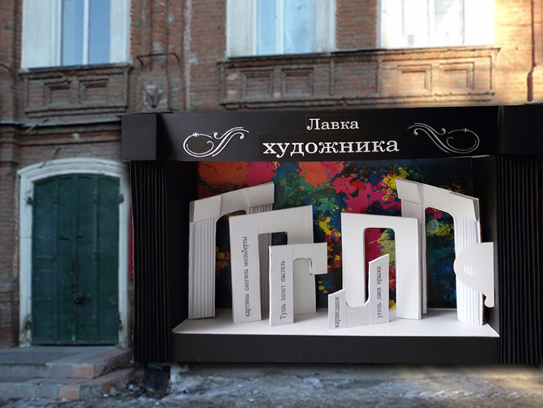 Задание звучало так, спроектировать витрину магазина (выбрать надо было из своего города). Я выбрала уже полюбившийся мне магазин "Лавка художника".