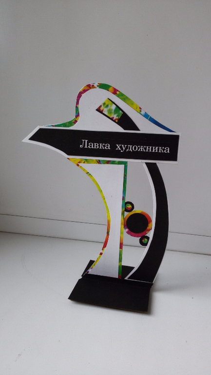 Макет выполнен из дизайнерской бумаги. В дополнение ещё спроектировался рекламный указатель, вот такого плана.