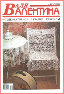 «Валя - Валентина» - журнал для тех, кто увлекается вязанием крючком салфеток,скатертей и т.д.. В каждом номере журнала Вы найдёте многочисленные салфетки разнообразных форм и размеров, выполненные в технике ажурного и филейного вязания. В этот номер вошли две старинные вещицы - скатерть и накидка на стул. Схемы для них были восстановлены по просьбе поклонников журнала, которые принесли и эти удивительные вещи, десятилетиями хранившиеся в бабушкиных сундуках. С помощью подробного описания и схем вы сможете создать шедевр от наших бабушек.