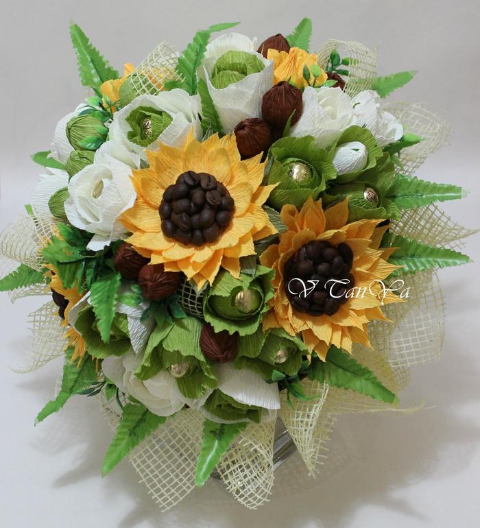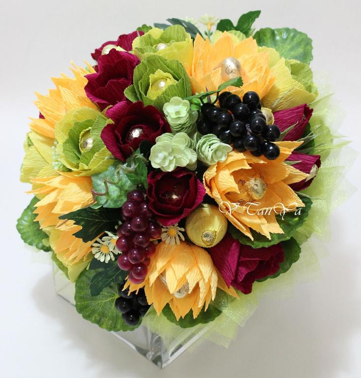 Очень красивые букеты, больше первые два букета понравились. первый совсем не обычный, скажите он на самодельном каркасе и размер его?