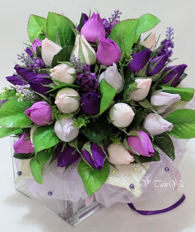 Но не будем о грустном.... Довелось мне поработать с одним заказом. Пять букетов на выпускной. Заказчик все оставил на мой вкус, чему я безмерно была рада. Вот, что в итоге получилось... Заказчик доволен, а я безмерно довольна... Появился стимул творить дальше. Прошу под кат.