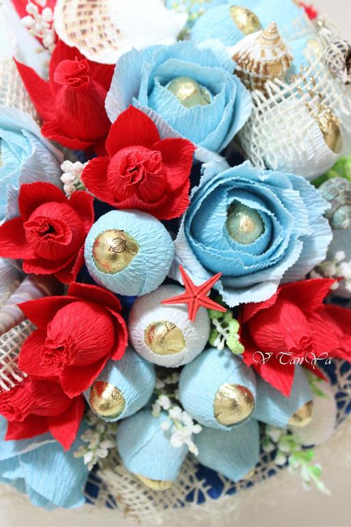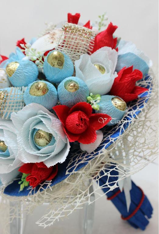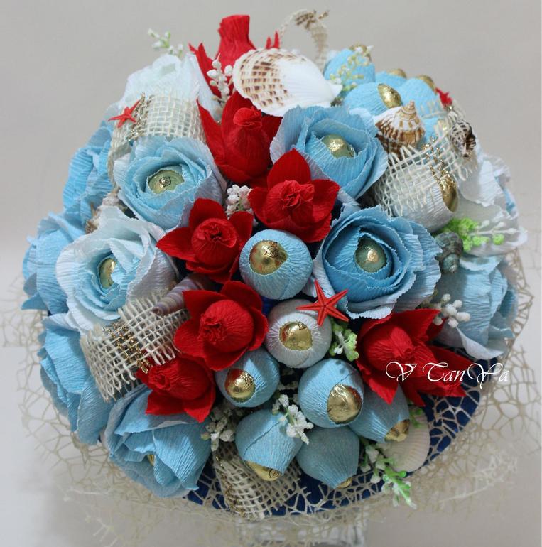 Спасибо, очень приятно! Да, на самодельном каркасе. Размер.... даже и не померила... Примерно 26-30 см в диаметре, ну и высота сантиметров 30. В составе конфеток 30-40 шт. Я раньше считала, сейчас уже не считаю...