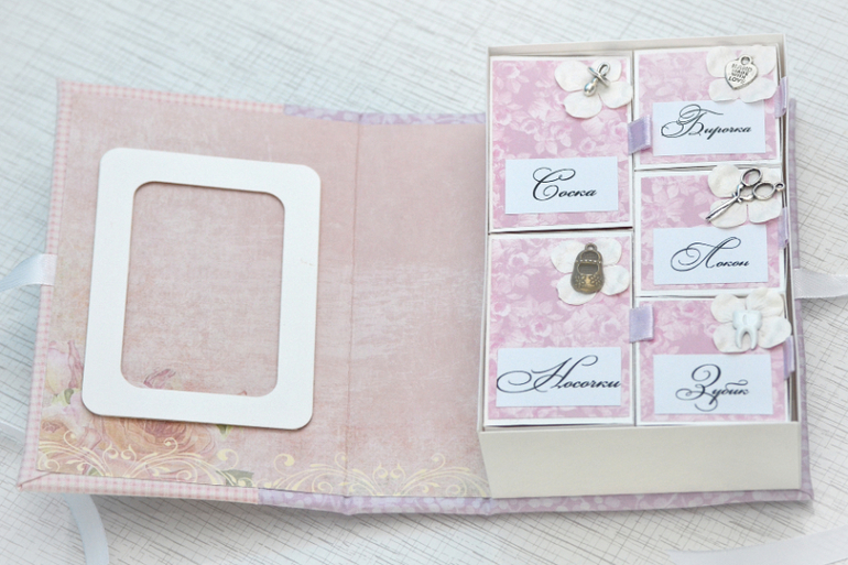 Слева - рамочка для фото, справа - содержимое коробочки)