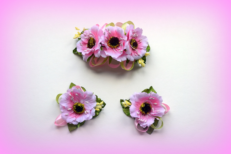 Вот такой набор еще появился. Заколка автомат и две резинки или тоже заколки.