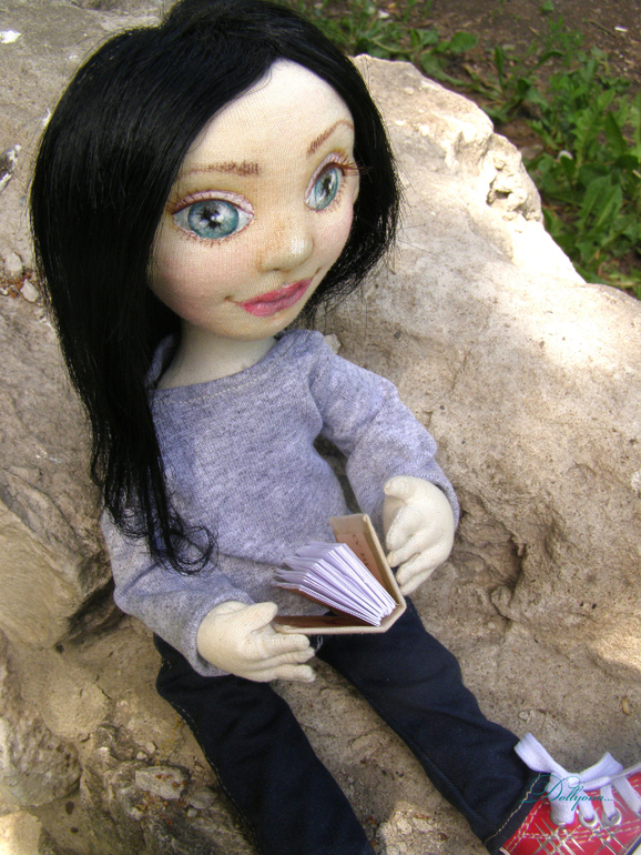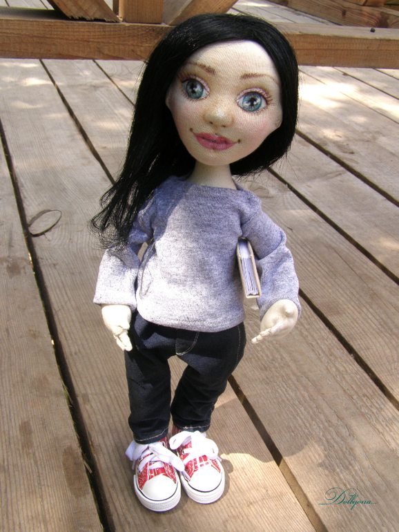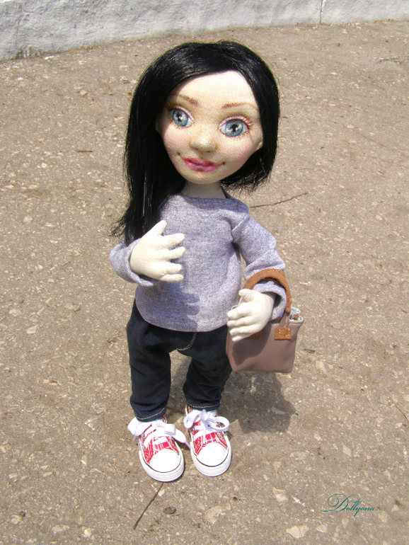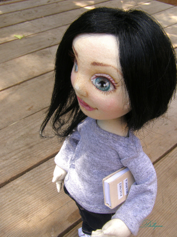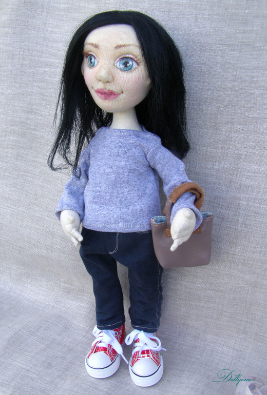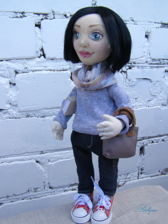 Мне очень повезло..шить портретную куколку на заказ для очень красивой и яркой девушки). Причём получилось так интересно...пока создавала куколку...её будущая хозяйка сменила причёску..нужно было стричь в самый последний момент...а так жалко))..поэтому все фото почти с длинными волосами и всего несколько с конечным результатом.В общем, современная стильная молодая девушка..бухгалтер и просто красавица. Стоит и сидит самостоятельно. Аксессуары все ручной работы...В сумочке лежит книга по бухгалтерии и ключик от счастья). Одежка съёмная. Шарфик из индийской этно- ткани. Ростик 37см.