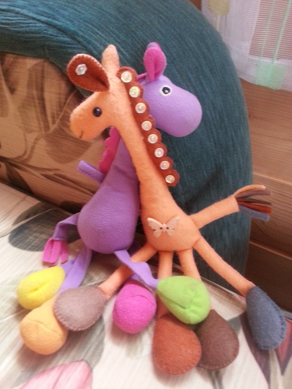 Алина в Рукоделие 10 лет Жираф-девочка из фетра Фетр Только дошила жирафа-девочку из фетра, а она уже подружилась с жирафом-мальчиком (ее прототип) и побежала в клумбы розы да календулы нюхать :) Много фото под катом Посмотрите еще 20 записей на эту тему Отменить Ответить Ирина Очень симпатичный жираф) Напоминает героев советских мультиков)) 03.07.2015 Ответить Алина Спасибо, Ирина :) 05.07.2015 Ответить Фоторамка из фетра "ПАРОВОЗИК" Вопрос по книжке развивашке Чаты Беременных Выберите чат: Январята-2026 Февралята-2026 Мартята-2026 Апрелята-2026 Майчата-2026 Июнята-2026 Июлята-2026 Августята-2026