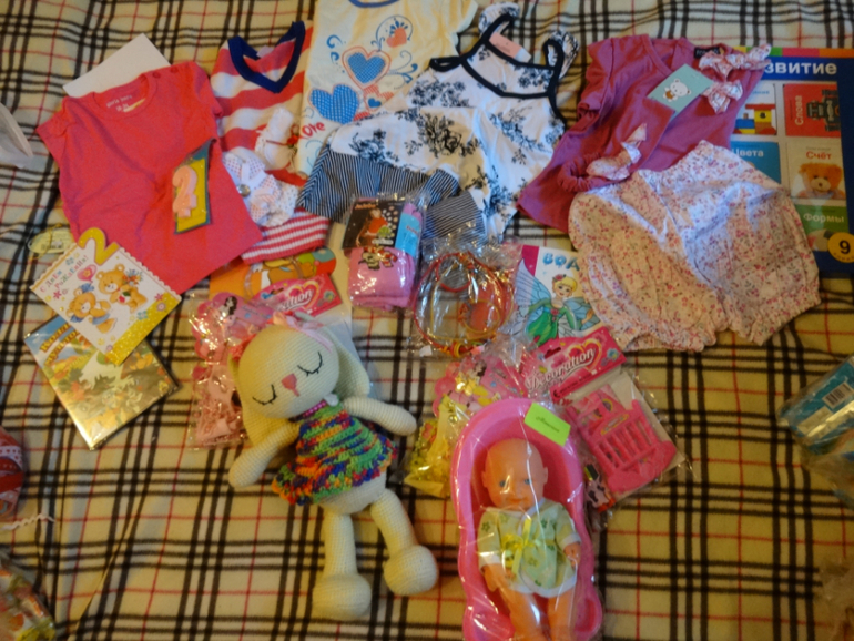 Ксюшенька, я очень рада нашему знакомству и нашим обоюдным ОП, я от них получаю массу положительных эмоций (надеюсь это взаимно)!Растите большими на радость маме и папе, а еще братишке и старшей сестренке. Мне очень приятно собирать для вас подарки.Куколка была последняя, поэтому коробочка слегка помятая (прости.....), у меня Даша в этом возрасте очень любила купать игрушки, я подумала, что Оленьке тоже будет интересно.Радостного Дня рождения!!!!
