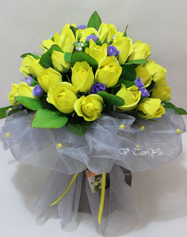 Шикарные букеты, такие разные... И - ура! - я сегодня тоже купила серую гофру!