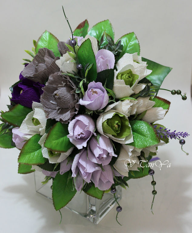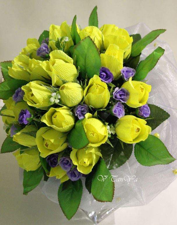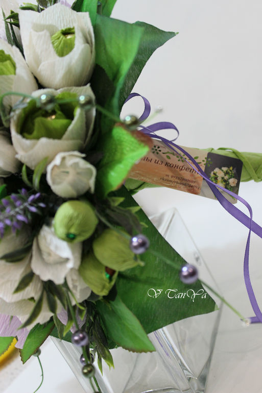 Первый очень оригинален по исполнению) Нравятся мне нестандартные сочетания! Таня. а не подскажешь зеленая гофра в первом букете какой тон?