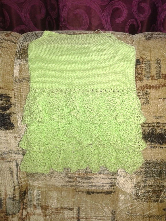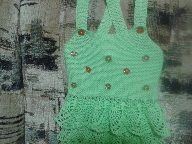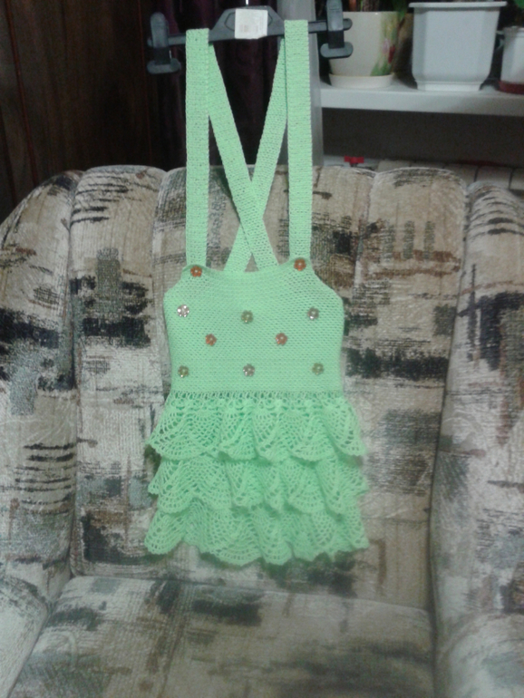 Поступил мне заказик от крестницы на сарафанчик. Я очень переживала чтобы все получилось - все время сомневалась в своих силах - так как вяжу с очень недавнего времени. Вязать оказалось очень легко и очень интересно наблюдать как каждый день ниточка превращается в изделие. Вот что получилось и как выглядело в процессе (прошу прощение за качество фото):