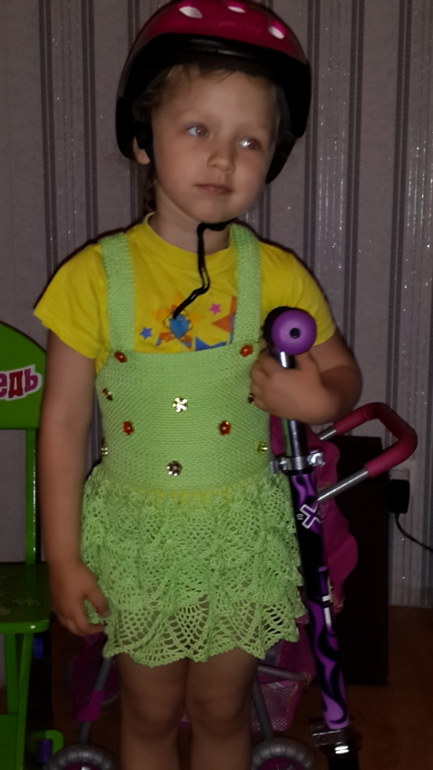 Здоровский сарафанчик получился! Лёгонький, ажурненький... И крестнице в нём очень хорошо!