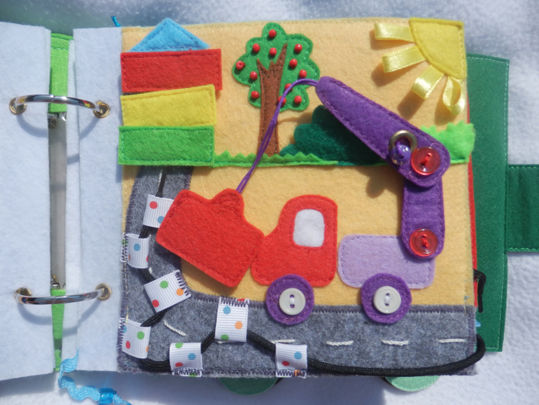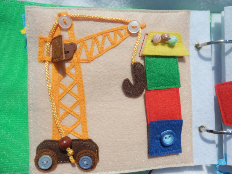 Башенный кран...учим основные цвета , счёт этажей , учимся расстёгивать разные виды застёжек (1 этаж-пуговица, 2 этаж -кнопка ,3 этаж -липучка, 4 этаж-бусины).Колёсики снимаются