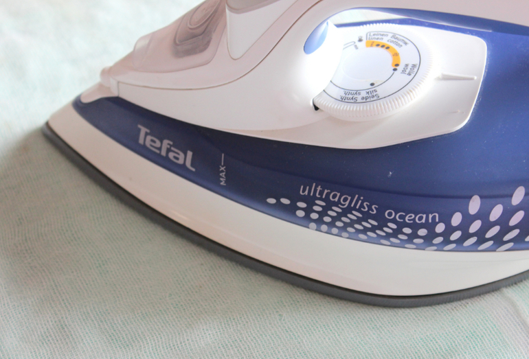 А теперь в дело вступает утюг. Нужно отключить функцию ПАР и температуру выставить на средн. значение. Сильного нажима не нужно, просто удерживать утюг на рисунке 10 -30 сек.Лучше сделать это в 2 этапа: подержали утюг 10-15 сек, подняли ткань и посмотрели на результат. При необходимости повторить. Я свой утюг и фетр знаю, поэтому делаю это в 1 прием и даже на максимальном температурном режиме, а вам советую перестраховаться,чтобы не спалить фетр.