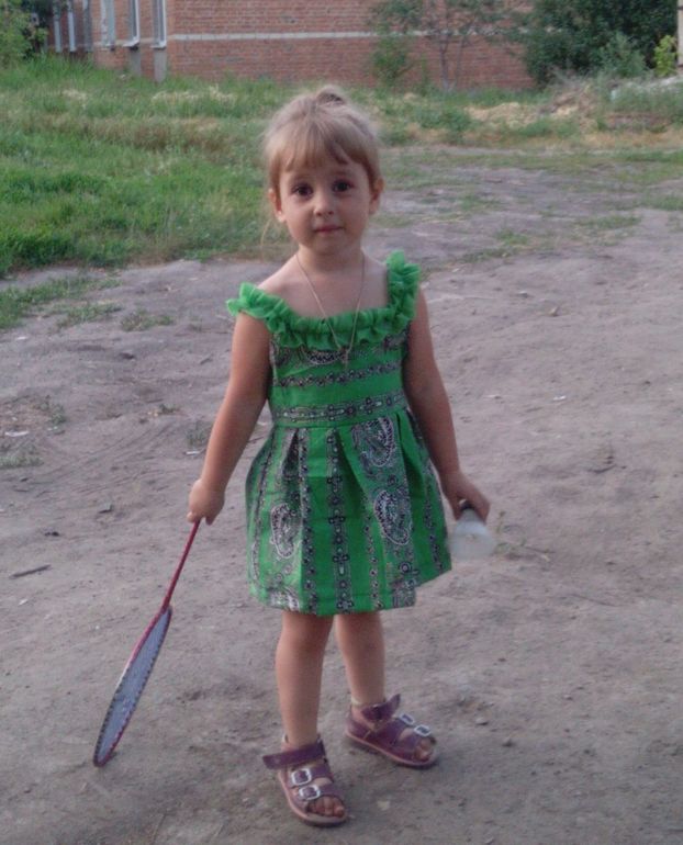 Хорошенькое платьице и дочурка симпатяжка. А поясок лучше(так мне кажется ) сделать из той ленты что оборочка