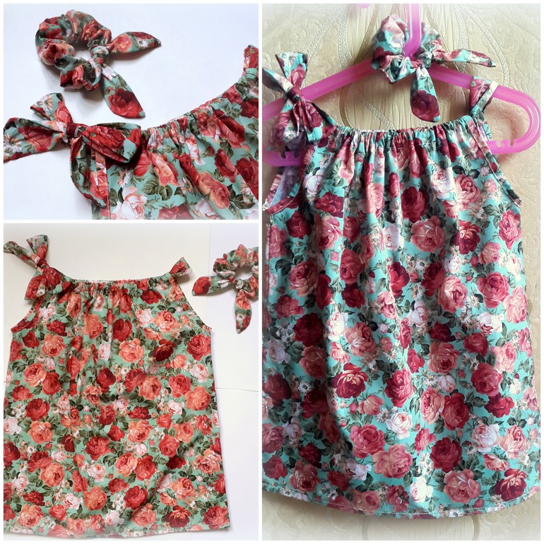 И здесь же покажу детскую маечку из хлопка, сшитую по очень простой выкройке. В комплект к маечке резинка "с ушками". Комплект сшит в подарок маленькой принцессе. Надеюсь, ей понравится)))