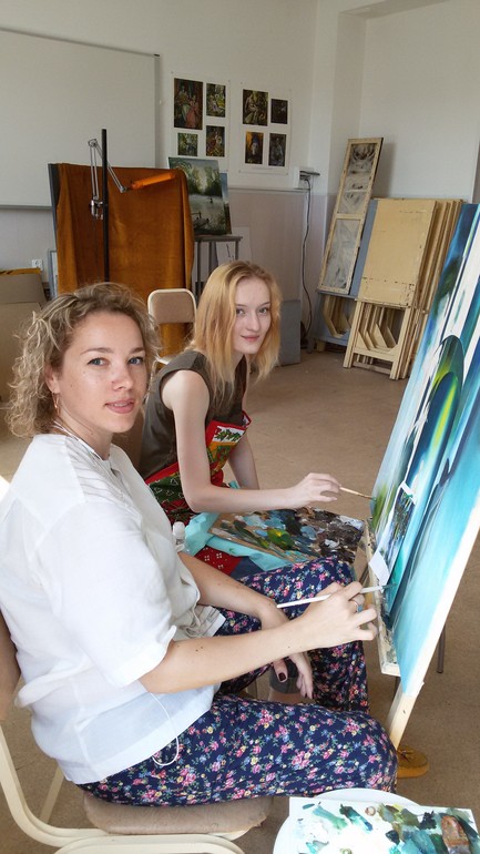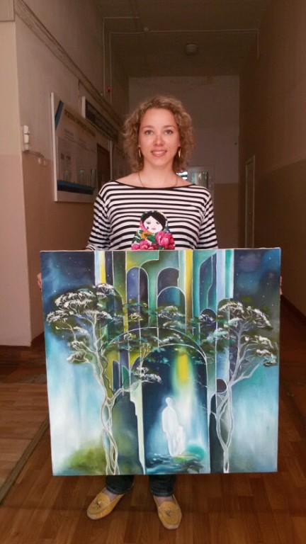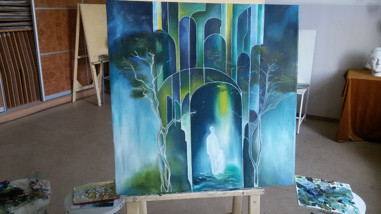 Будут 4-ре картины в одной тематике, но разные по сюжету и цветовой гамме, в пятницу на просмотре покажу все в комплекте. Эту работы мы писали в двоём с девочкой. Немного разные почерки, но в целом не заметно.