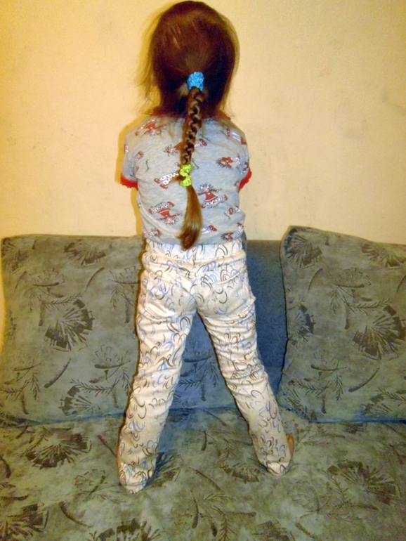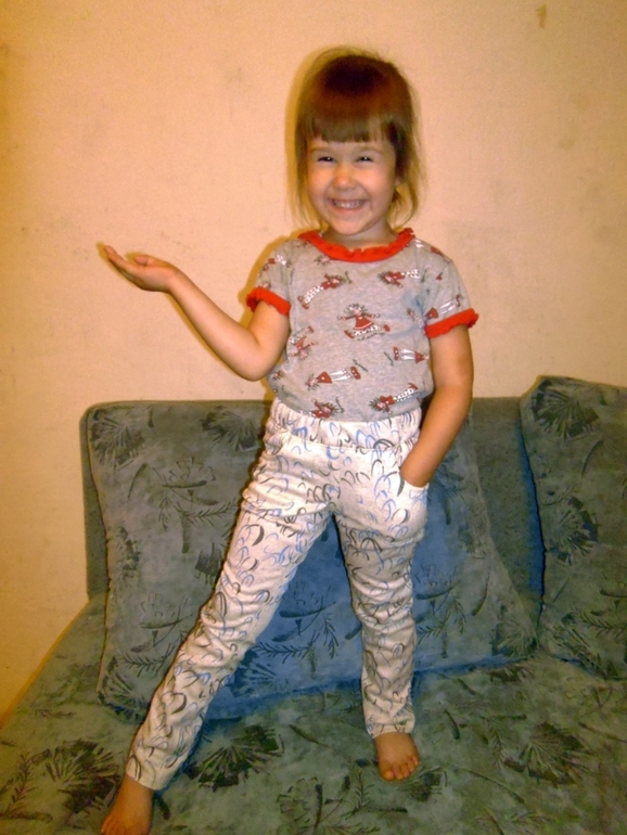 Шитье одежды, выкройки, ремонт одежды, шторы, швейные машины (уже приобретенные)Решила вчера попробовать сшить брючки для Алисы. Выкройка из Отто 6/2014 мод.20 рост 104. В общем это брючки -переделка,т.к. сшиты из старой юбки трикотажной( даже не помню кто отдал нам ее). Модель понравилась как сидит. Но если шить из джинсы,то только стрейч.Думаю еще парочка брючек-джинсиков будет сшита по этой выкройке. Алиса сегодня в них уже утопала в садик,хвастаться. В последнее время очень ей это дело понравилось)))