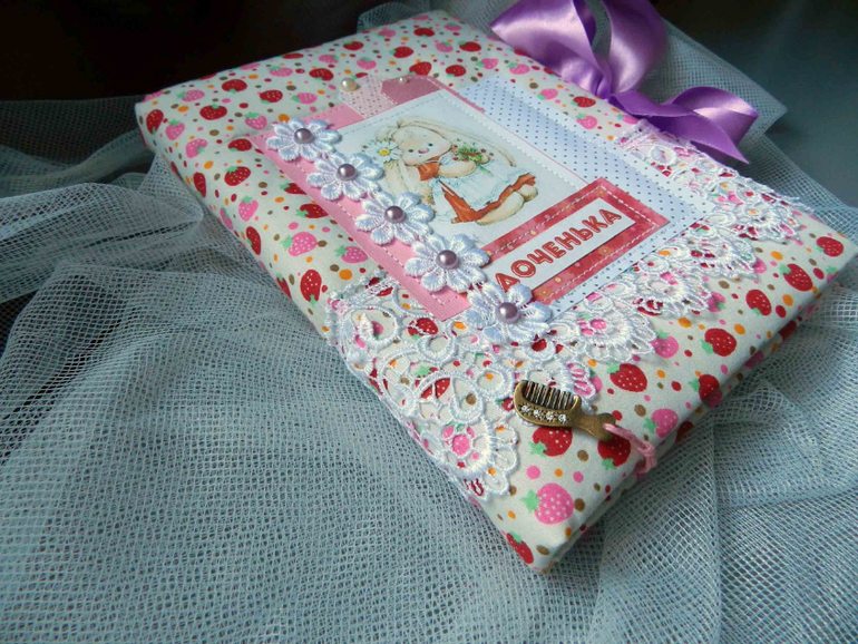 СкрапбукингДобрый день, девочки!!!Лето-лето! Смотрите, какой сегодня у меня дневничок для девочки-ягодки! Он такой летний, сочный, нежный. Формат, как обычно, А5, более 130 страничек для записей. Тканевая обложка, кружева, закладочка.
