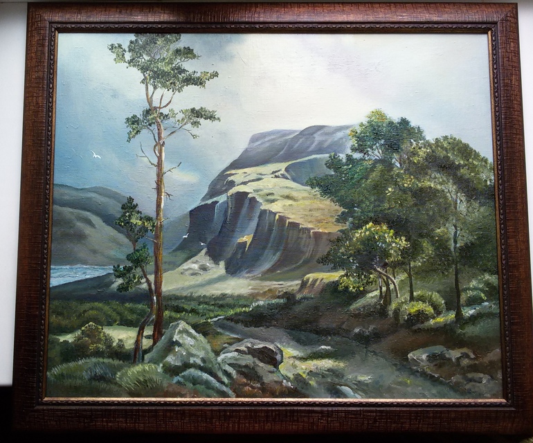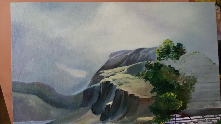 А мне твоя работа нравится больше! Мне кажется, что твоя копия лучше оригинала! Твоя картина "труднее"! Кажется, что сама туда взбираешься, на эти горы. Я не знаю какую оценку тебе поставят, но очень надеюсь, что хорошую, учтут всю сложность. Замечательная картина!