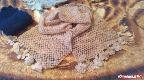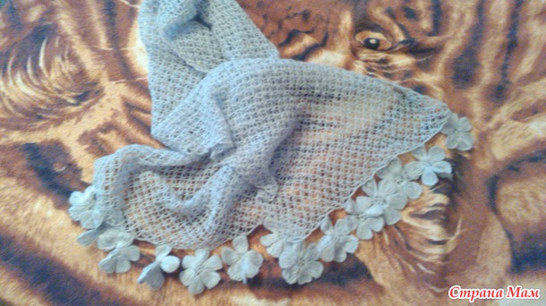 На каждый палантин израсходовано 2 мотка пряжи Angora Alize Reail крючок 1,4, а для шарфа YarnArt Merino De Luxe 1 моток, спицы №3.