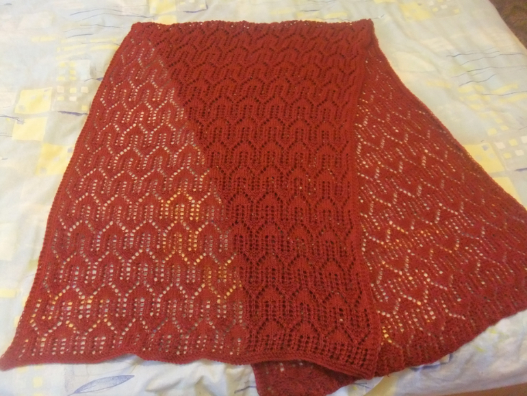 Вязание спицамиЧто-то "пробило" меня на вязание. Выменяла на ББ кучу красивых ниточек. Вяжу как заводная. Выставляю на ваш суд палантин. Размер 65*200 см. На фото смотрится красным. но он вишнёвый, правда-правда.