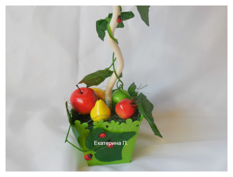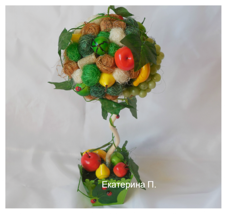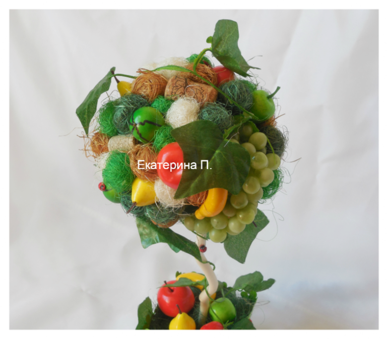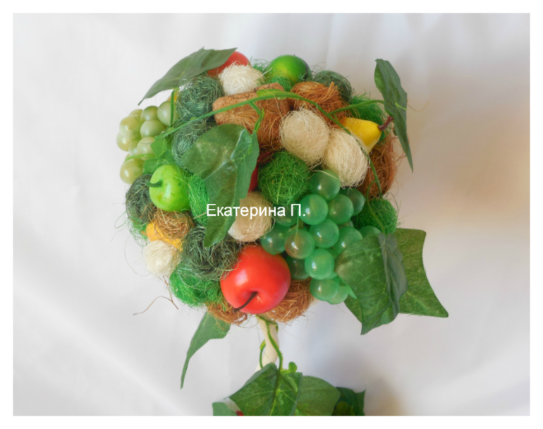 Теперь топиарии. Давненько мне хотелось сделать деревце с виноградом и бутылочными пробками )))
