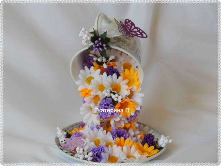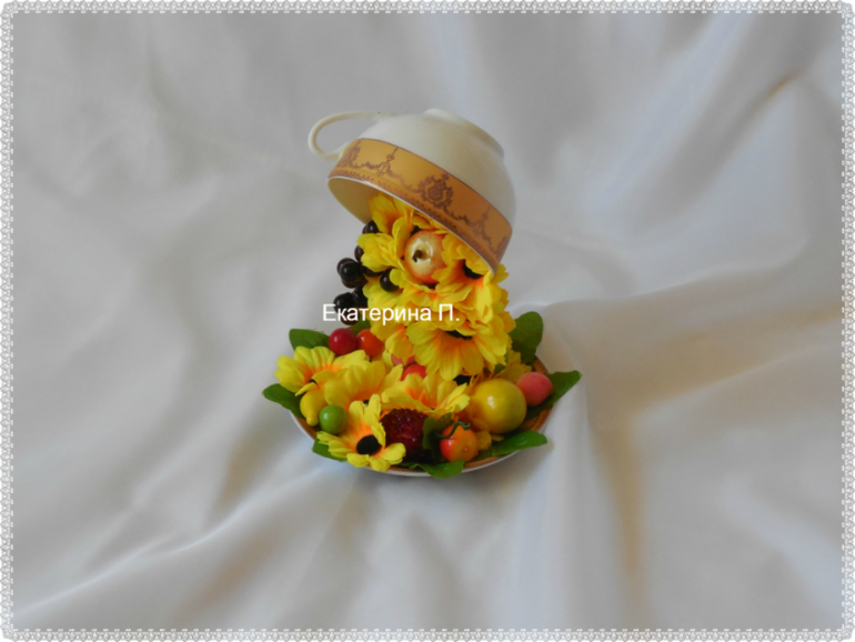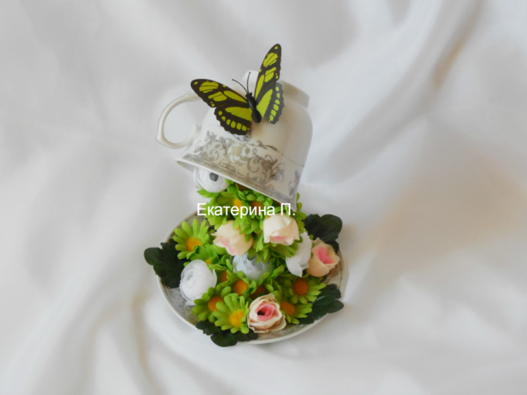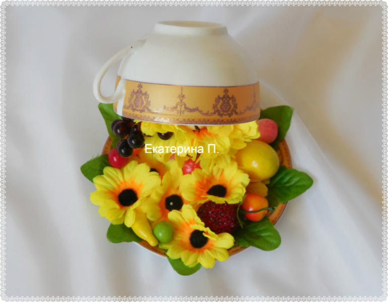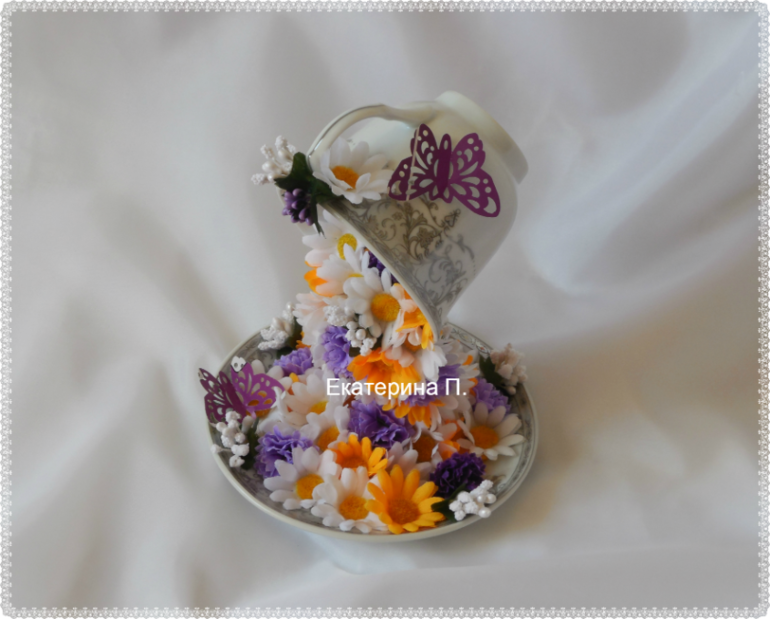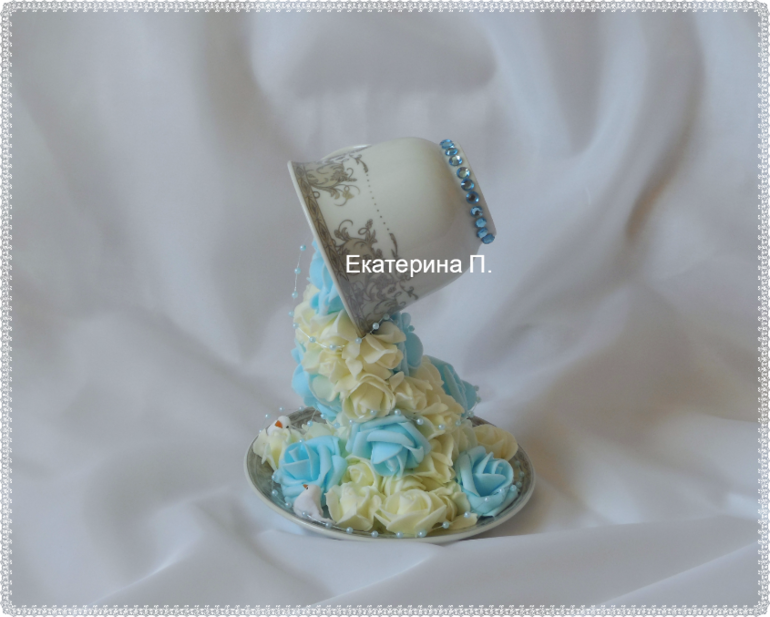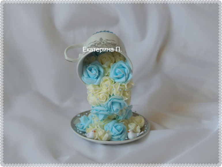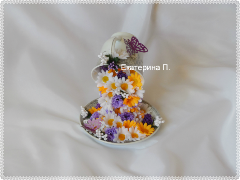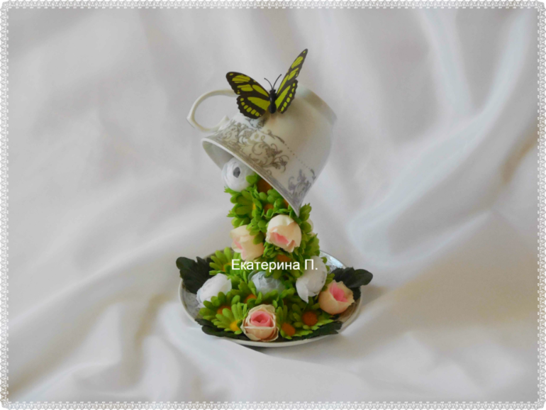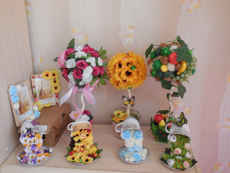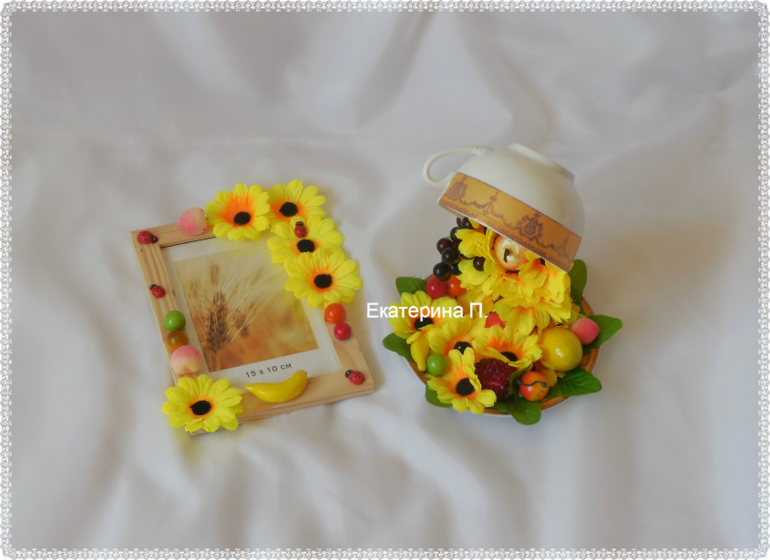 Катюша, какая молодец! Сколько красоты натворила! Чашечки бесподобны! Еще понравилось дерево с цветочками розовыми! А вот рамочку для фото я бы покрасили белой акриловый краской, чтобы сочеталась с белой кружкой. Надеюсь не обидела!