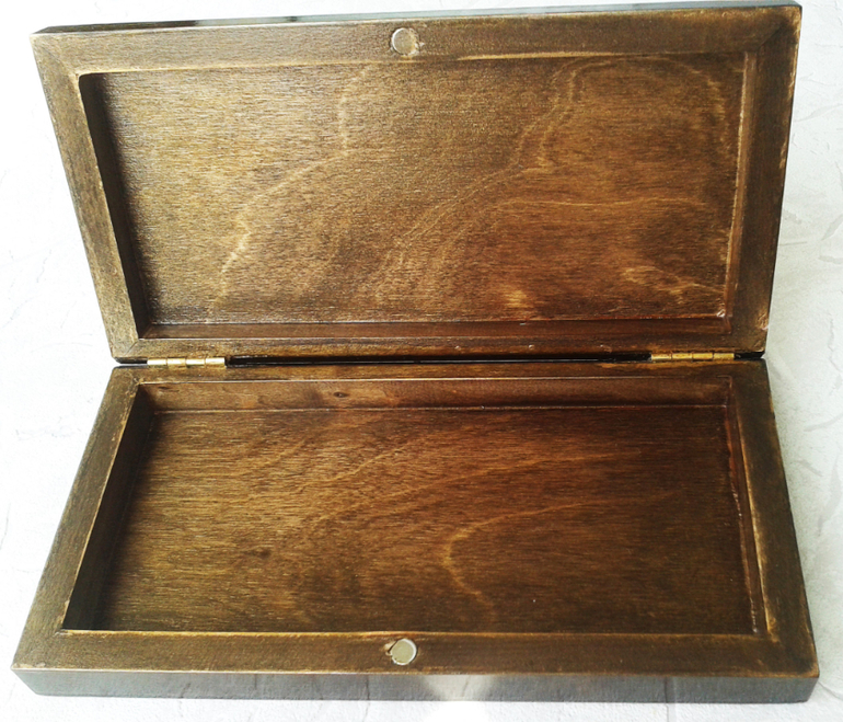 Боковинки и внутри покрашено морилкой "полисандр" и подтонировано жидкой патиной "античное золото" пр-во Турция.
