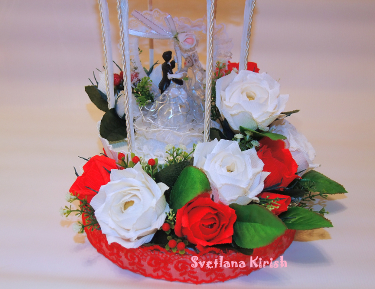 Идею взяла у Натальи Пецкус, да простит меня автор, но очень захотелось сделать, тем более заказ такой поступил. Сделала на одном дыхании, результат превзошел все мои ожидания. Как всегда ярко, нежность не в моем стиле. Надеюсь заказ понравится и заказчику и молодоженам.