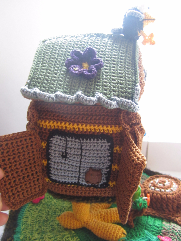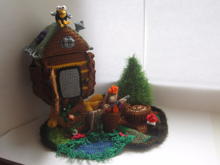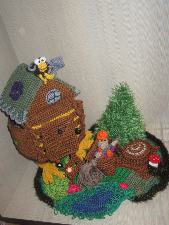 сделала вне заказов, просто потому что давно хотела это сделать, 5 дней упорной работы. Избушка сделала по принципу развивающего кубика, много заданий (крыша на липучке, двери/окна на пуговицах, паучок перемещается по паутине), внутри - кубик -мякиш) Верин) скоро хватится, пока не заметила пропажи. Баба Яга пальчиковая, елка отдельно, а пень пришит к полянке