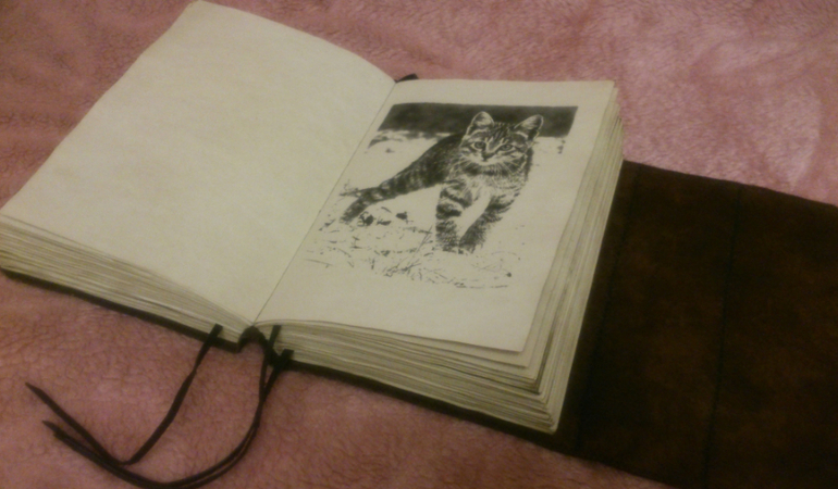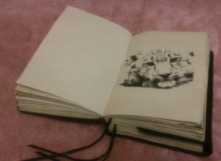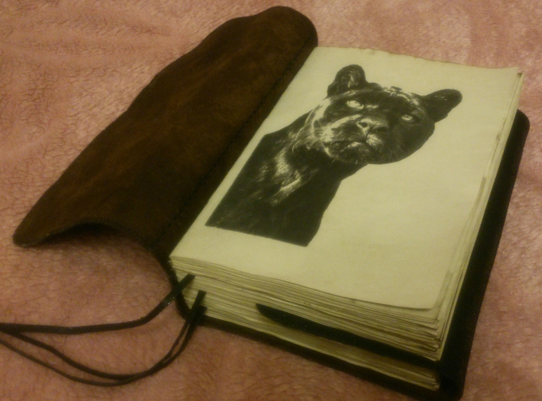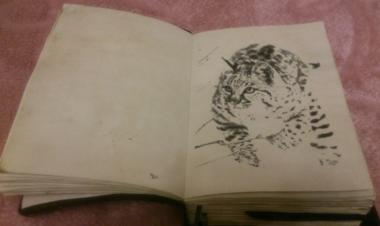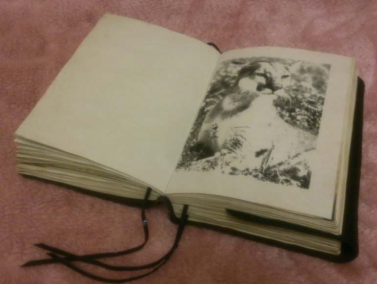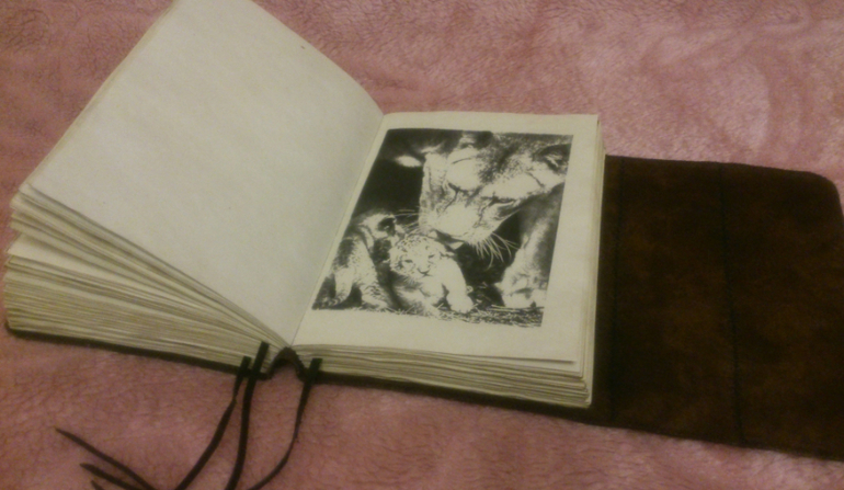 Блок состоит из состаренных 300 листов - 600 страниц и содержит более 10 картинок с изображением представителей кошачьих: пантеры, львы, пумы и др.