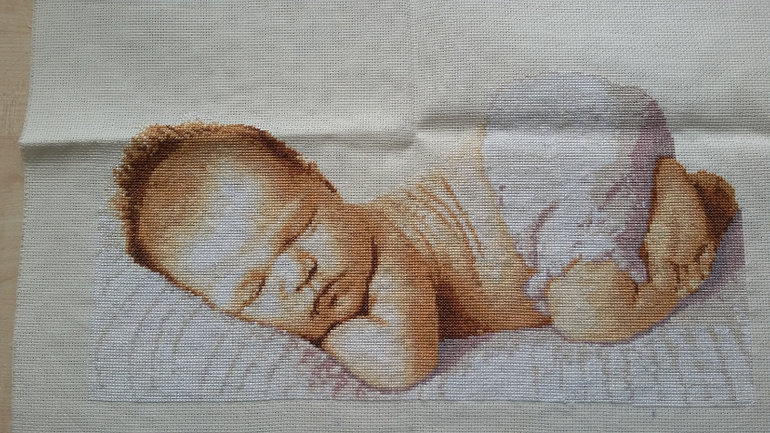 спасибо большое очень приятно,вышивала с удовольствием особенно личико и ножки маленькие,уже оформила и повесила в детской,кто приходит не могут наглядеться,малыш как настоящий получился,но такой переход одного оттенка в другой немного напрягал,зато результат порадовал! Советую вам тоже вышить такого.