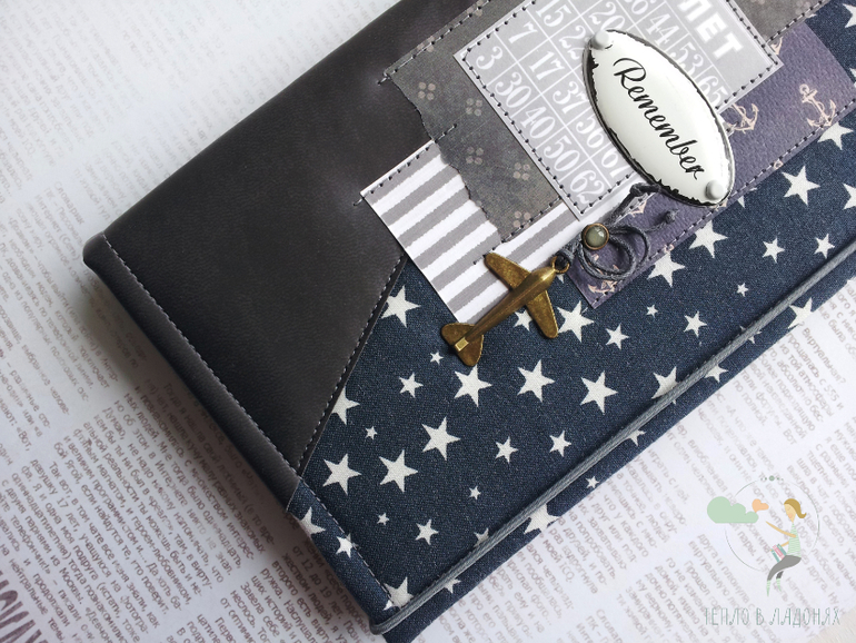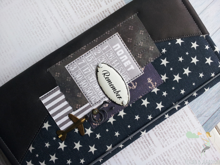 Размер холдера 23,5х11 см, обложка обтянута кожзамом и хлопком.