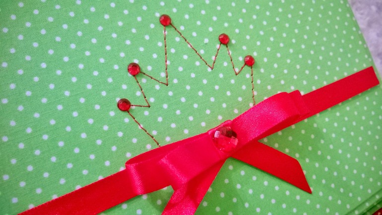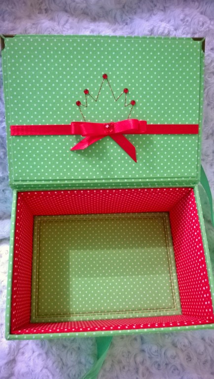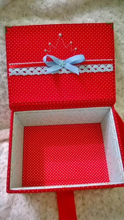 Крышку я оформила хлопковым кружевом и ленточкой+распечатала на принтере корону, вырезала, обвела карандашиком по контуру и прострочила на машинке, а стразики добавили яркости: